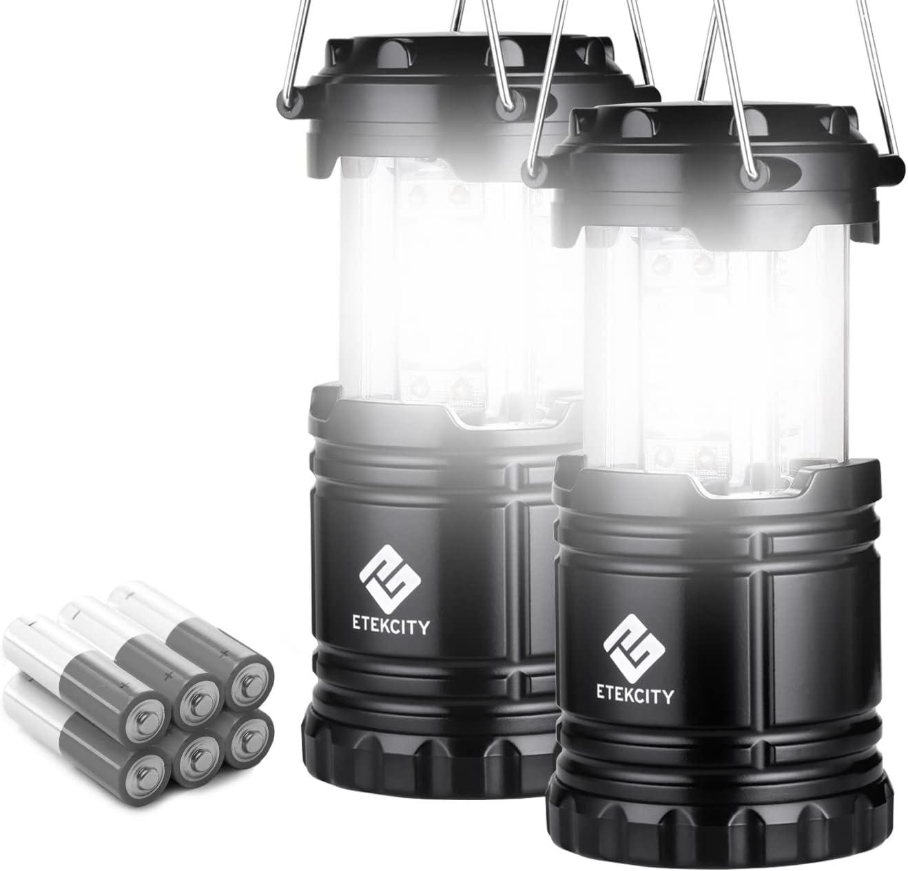 Etekcity lantern provides up to 50 hours of light with 3 AA batteries (included) and has a convenient top storage compartment.