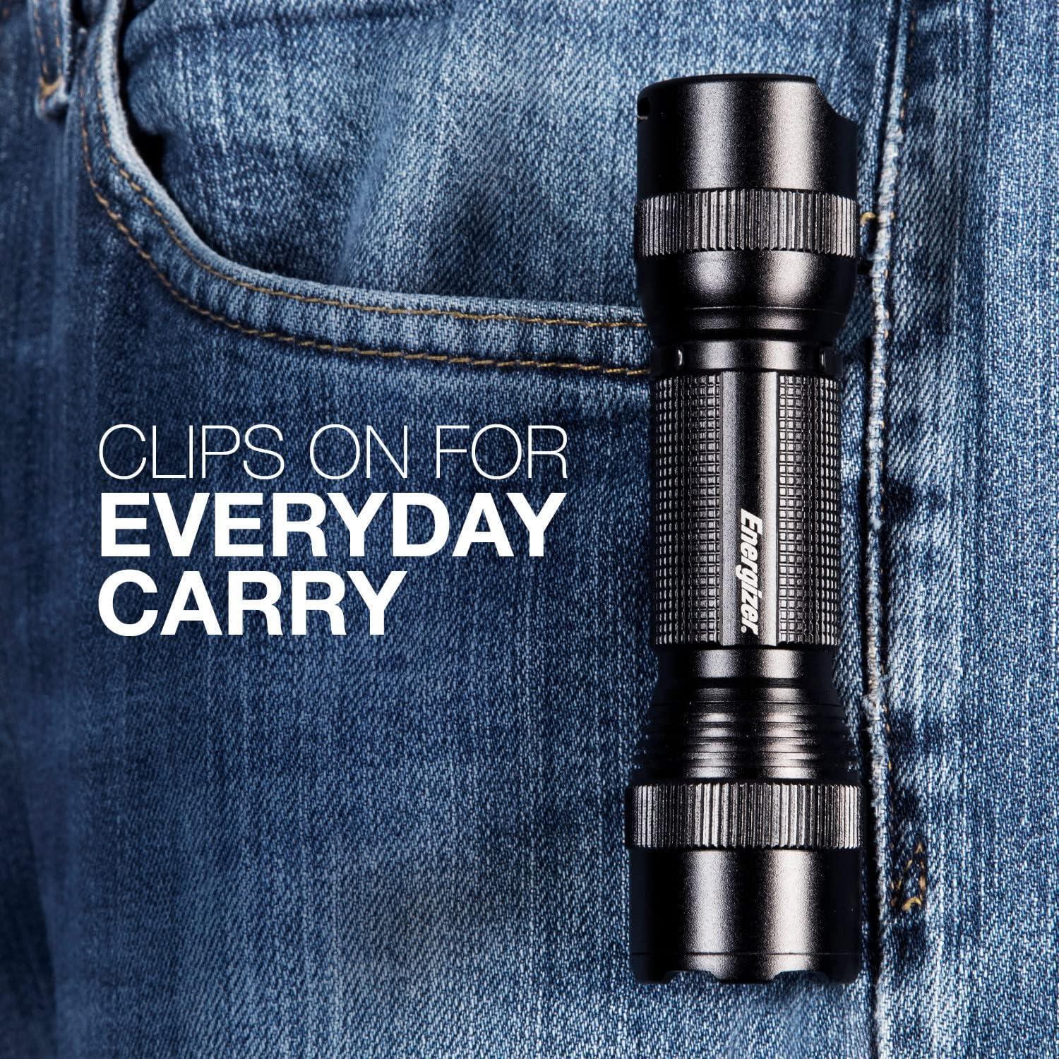 Meet the compact and powerful Energizer Tactical TAC 700 Flashlight conveniently clips on for everyday carry. MAXVIZ technology delivers a wide and ultra-bright beam with high-def visibility for objects near and far. Water-resistant, its durable aircraft-grade alloy metal body gives you reliable impact-resistance… even when dropped from up to 1 meter high. Not only that, this flashlight offers some seriously bright light (we’re talking 700 lumens on high mode). Its 4 light modes, including an emergency strobe mode accessible with a quick half, then full push of its rubber tailcap switch button, gives you the light you need no matter the situation. Whether you use the TAC 700 outdoors or in, the convenient removable clip changes orientation for easy access whenever you need it—from hunting to DIY projects or emergency situations. Comes with 2 Energizer Lithium CR123 batteries.