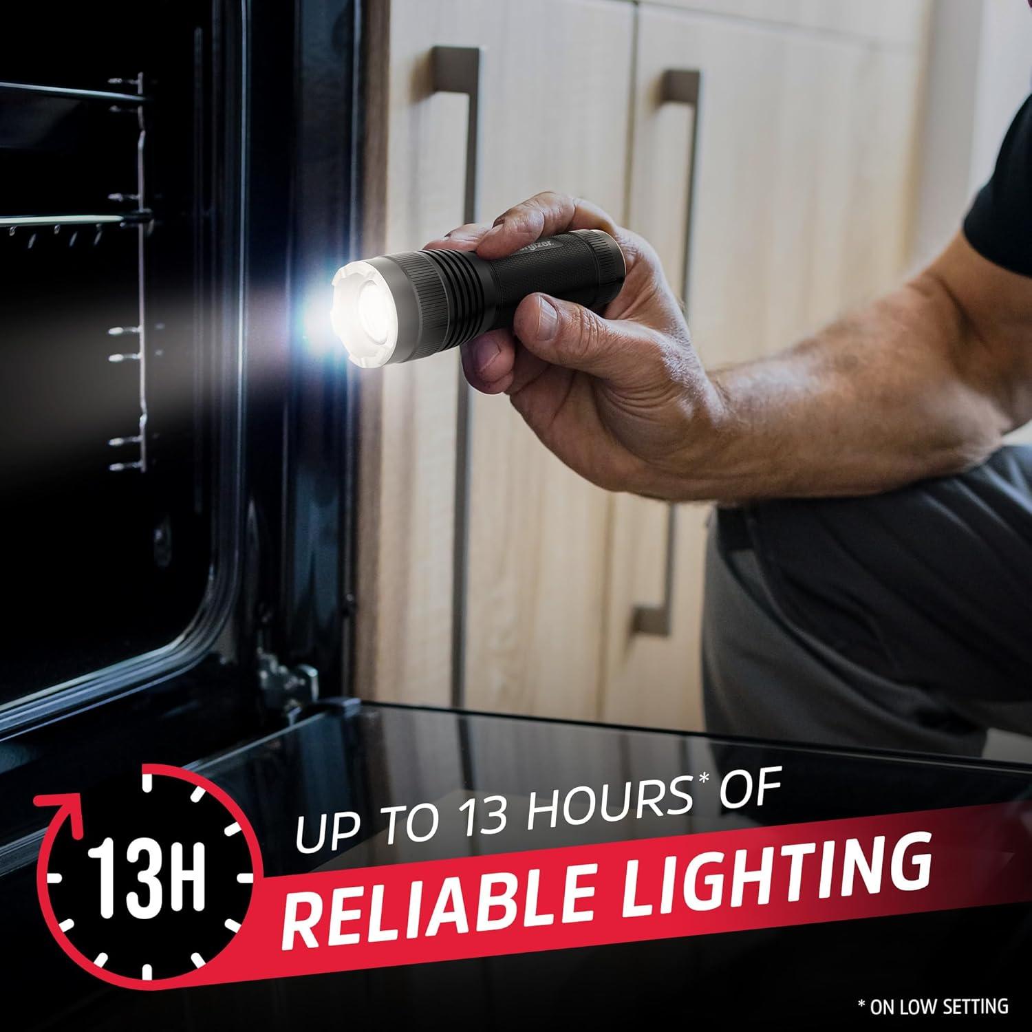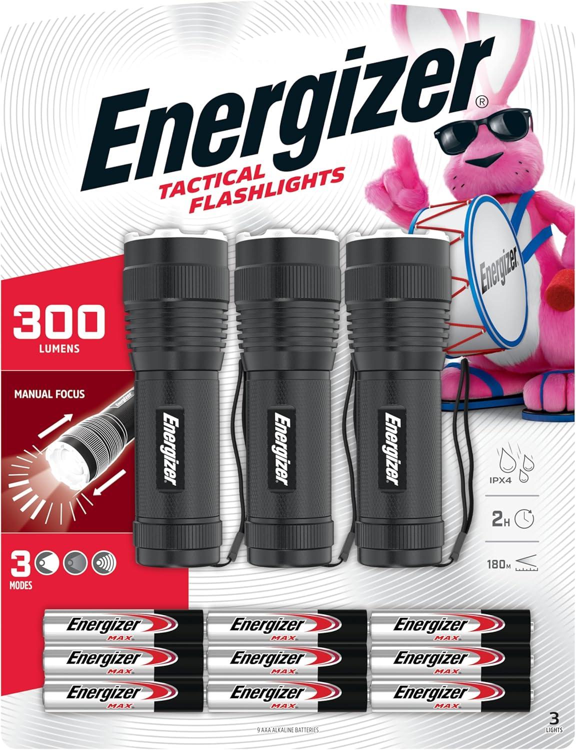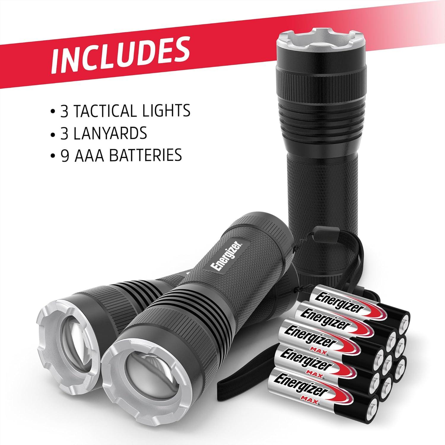 [Mini Energizer Flashlight]: This pack of three Energizer Tactical Flashlights is great for indoor and outdoor use, and includes 3 Energizer AAA batteries for each flashlight